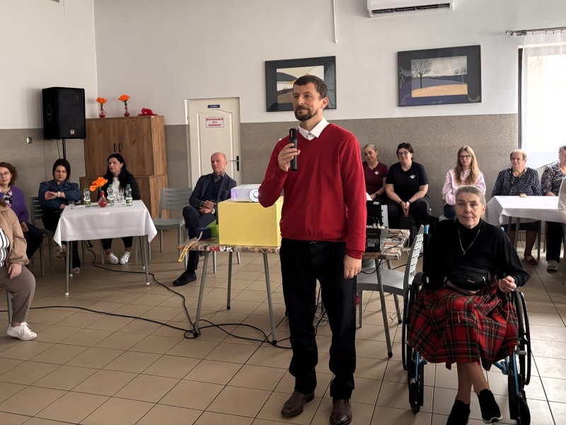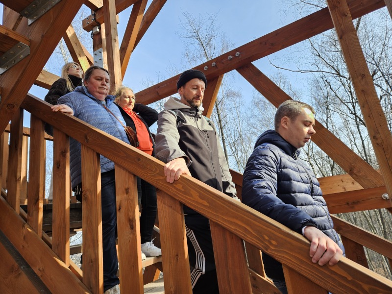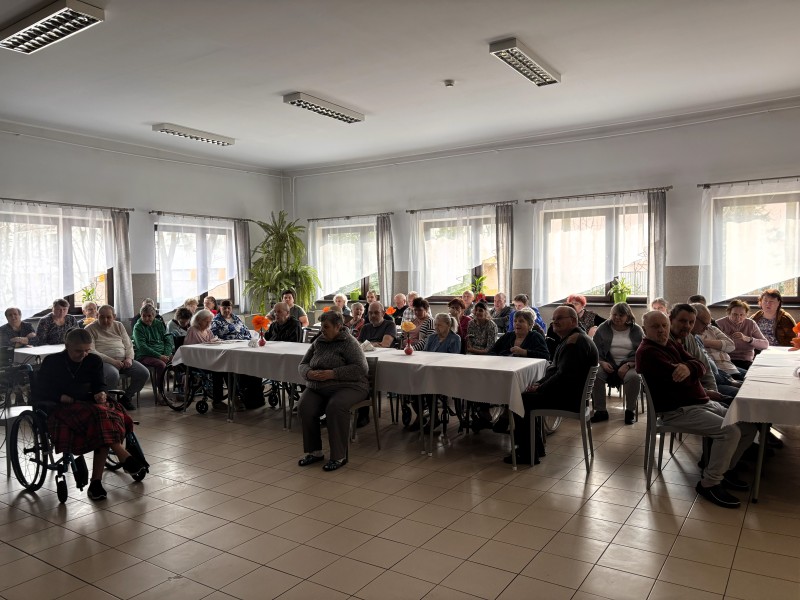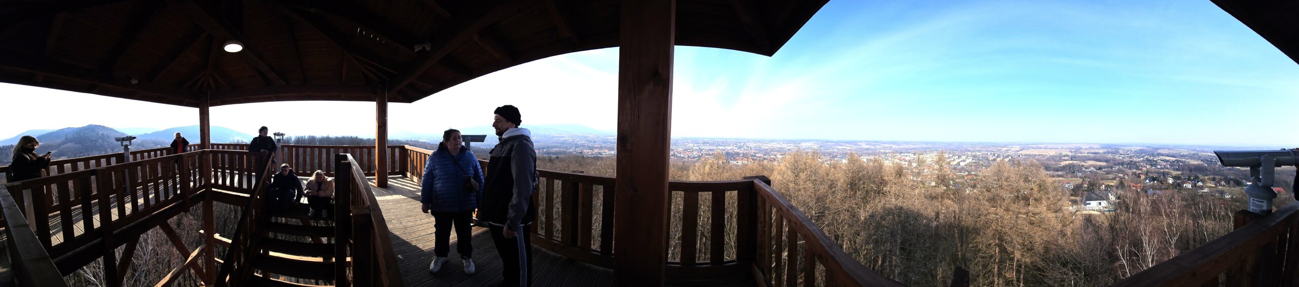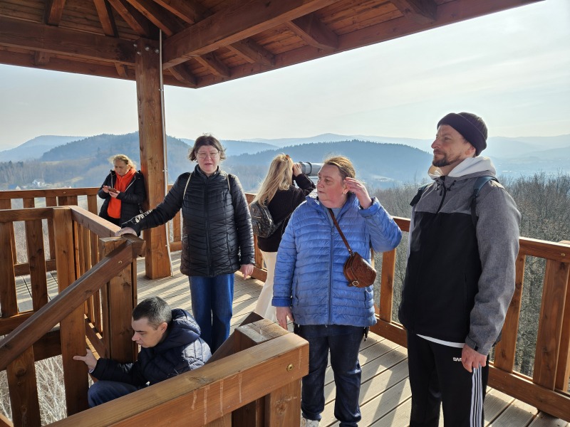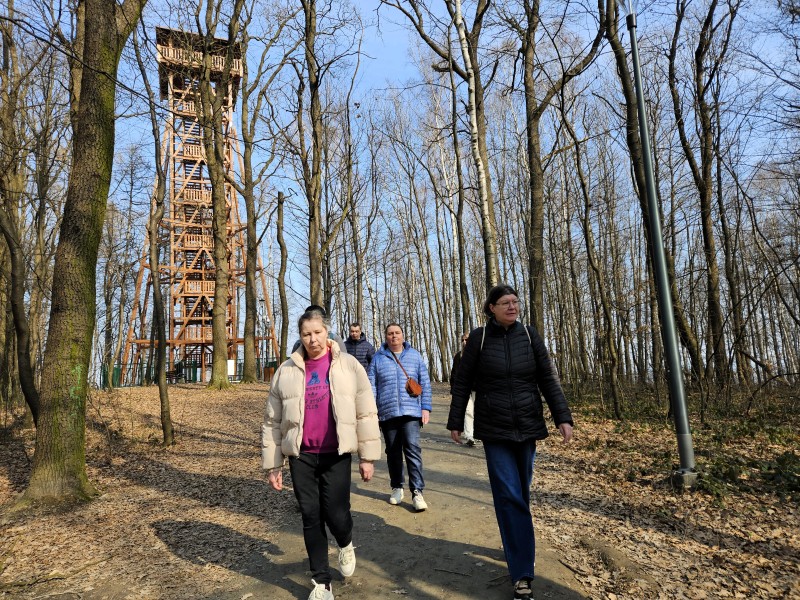 To był prawdziwy wyczyn dla naszych Mieszkańców. Wyruszyliśmy tuż po 9.00 autobusem w kierunku Andrychowa. Z przystanku górnego ruszyliśmy w kierunku Pańskiej Góry. Rekreacyjnymi ścieżkami wśród drzew dawnego sadu wspinaliśmy się powoli na szczyt. Tam czekała nas atrakcja dzisiejszego wyjazdu- 32- metrowa wieża widokowa z przepiękną panoramą na Beskid Mały. Z wieży przez las udaliśmy się nad Staw Anteckiego. Spacerowi towarzyszył śpiew ptaków i energiczne postukiwania dzięciołów. Nad stawem chwila odpoczynku i już zmierzamy w k przystanku. Wcześniej jednak czeka nas jeszcze zasłużona kawa i pyszne ciasto w kawiarni o wdzięcznej nazwie „Dzień dobry”.